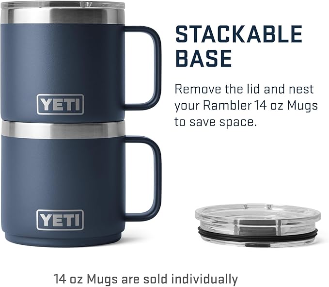 - STACKABLE BASE - Remove the lid and nest your Rambler 14 oz Mugs to save space