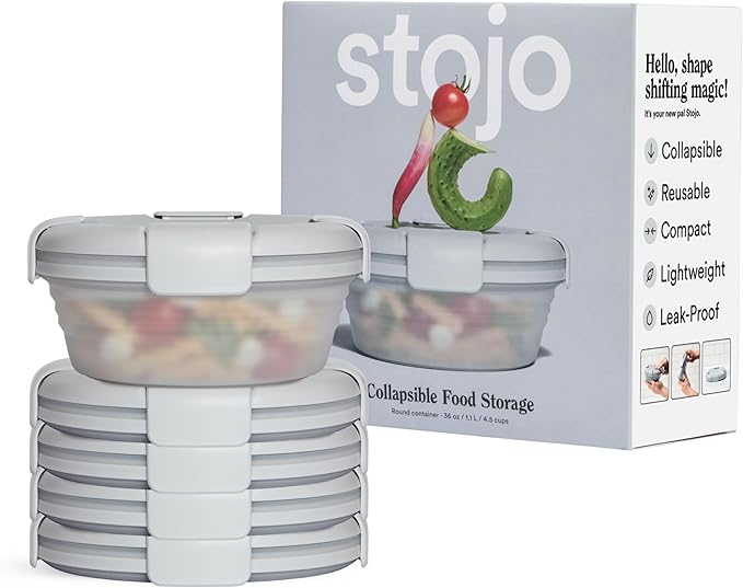 - Collapsible bowl: It’s literally never been easier (or more fun) to prep, store, and take food on the go! This compact bowl collapses down to just 1.3 inches. The 36 oz Stojo Bowl holds up to 4.5 cups of eats and is made for the kitchen as much as the commute. It stores nested and flat to save space, then pops open to upgrade your meal prep, leftovers, and work lunches. This Aquamarine Blue container is going to look right at home in your kitchen cabinet.