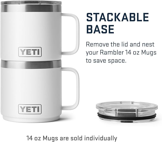 - STACKABLE BASE - Remove the lid and nest your Rambler 14 oz Mugs to save space
