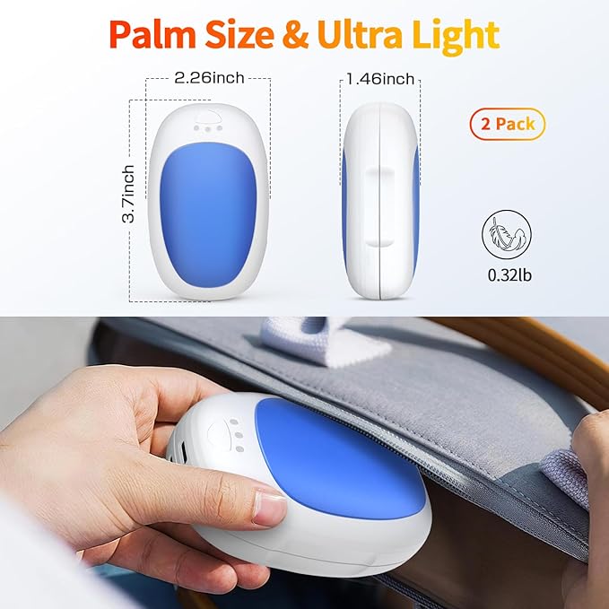 - 【Upgraded Hand Warmers 2 Pack】 Rechargeable hand warmers designed with double-sided heating, you can merge them to get one hand warmer, or separate it to have two reusable hand warmers, which can provide warmth for your both hands. It is palm size and ultra light, you can easy to put into your each pocket.