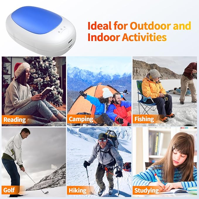 - 【Long Battery Life & Rechargeable】 Handwarmers built-in 2000mAh x 2 rechargeable battery, which can provide 6-10 hours of continuous heating each pack, perfect for all-day outdoor and indoor activities. Such as camping, hiking, fishing, skiing, walking, hunting, playing golf, reading, watching TV, etc.(Notice: Not support power bank function)