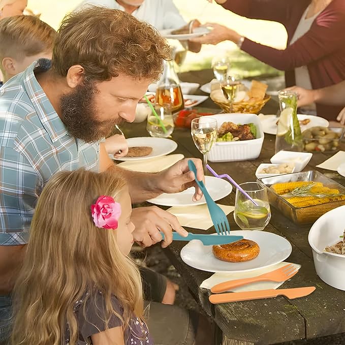 - Plastic Cutlery Set: Made of high quality plastic PP, free of heavy metals, Doesn’t contain harmful metal, is corrosion-resistant and durable. Healthy life begins with healthy flatware set!