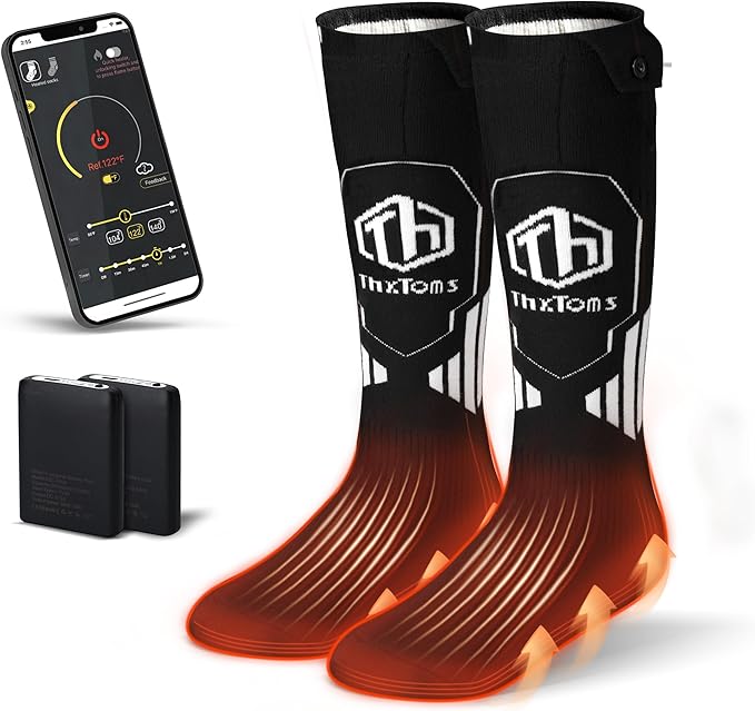 ThxToms Heated Socks for Men Women with App Control, 5000mAh Rechargeable Battery Electric Heating Socks,Upgraded Washable Foot Warmer for Arthritis Ice Fishing Skiing Hunting