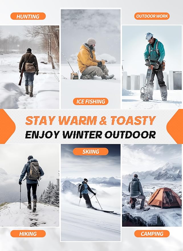 - IDEAL FOR OUTDOOR COLD-WEATHER ACTIVITIES:Electric heated socks provide warmth but also stimulate blood circulation in the feet, especially good for people who suffer from poor circulation, frostbite, Raynaud’s, arthritis and chronically stiff joints. Stylish unisex heating stockings are a thoughtful gift for loved ones who enjoy being outdoors regardless of the weather. Can be used for cycling, climbing, hunting, ice fishing, motorcycling, snow skiing and more.