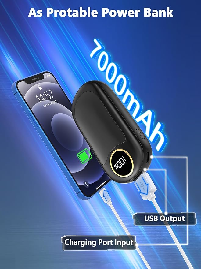 - Provides Warmth for a Long Time: This rechargeable hand warmers total is 7000mAh. It can be fully charged in 3-4 hours and can provide up to 18 hours of continuous warmth! When you use single sided heating mode, it can be used up to 18 hours, and when you use double sided heating mode, it can be used up to 8 hours. Say goodbye to the hassle of frequent charging and ensure you stay warm all day long