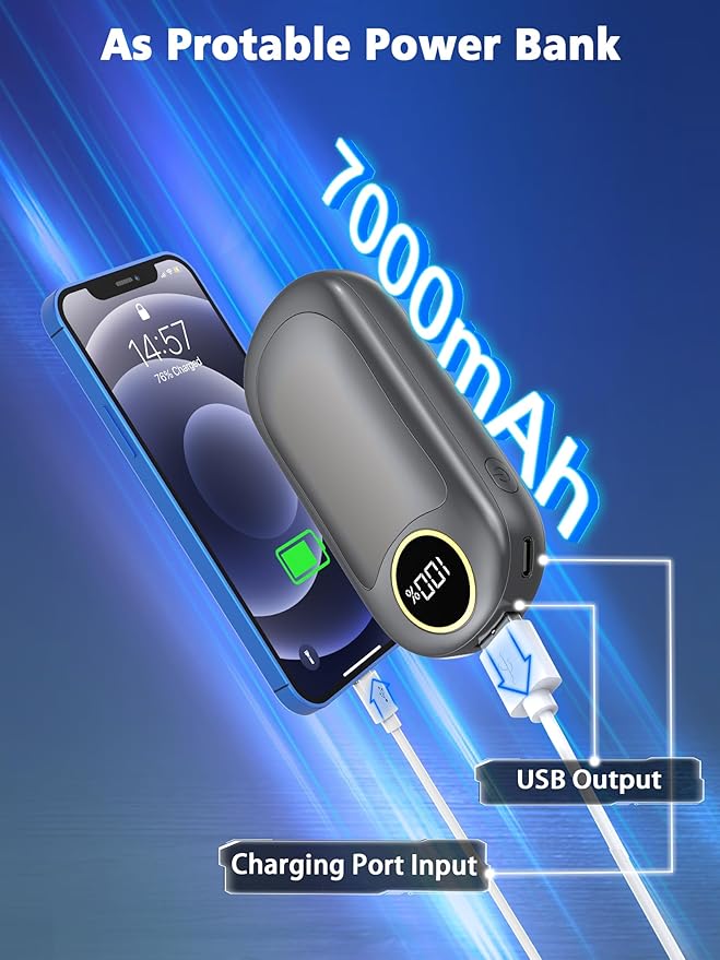 • Provides Warmth for a Long Time: This rechargeable hand warmers total is 7000mAh. It can be fully charged in 3-4 hours and can provide up to 18 hours of continuous warmth! When you use single sided heating mode, it can be used up to 18 hours, and when you use double sided heating mode, it can be used up to 8 hours. Say goodbye to the hassle of frequent charging and ensure you stay warm all day long