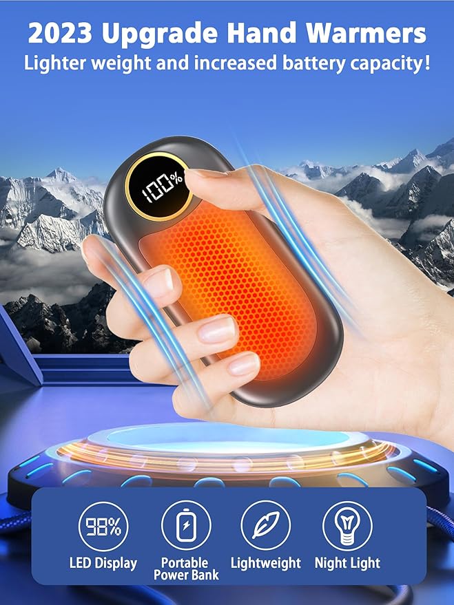 • Multifunctional Hand Warmers Rechargeable 1 Pack: Using advanced temperature control chips to accurately control the temperature, whether you are outdoors or indoors, it can warm your hands and keep the cold away. It can be used as an emergency power bank when you are out, charging your mobile phone or other devices at any time. Our electric hand warmers built-in LED light which can provides lighting in the dark