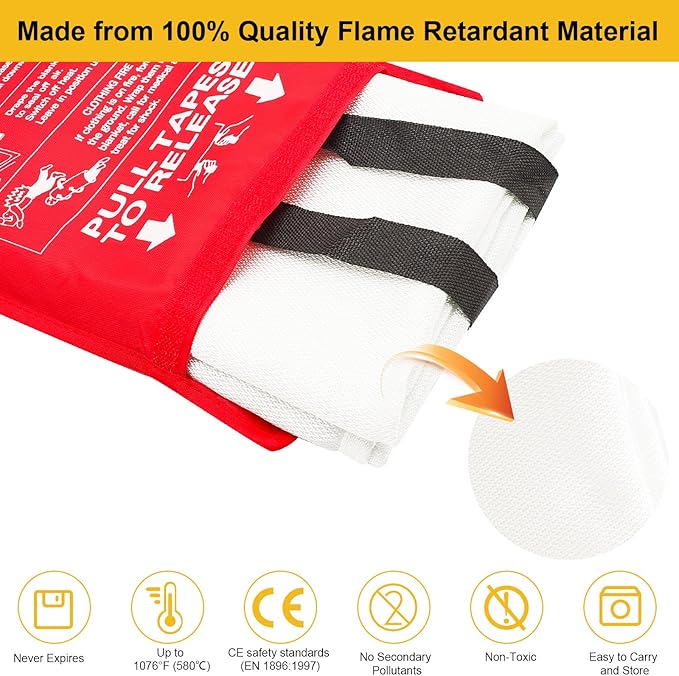 - Keep Your Family Safe: A fire blanket is a highly flame-resistant blanket that can be used to extinguish a small fire or to wrap around a person in case of a fire. Fire blankets are made from 2 layers of woven glass fibre fabric and an inner layer of fire retardant film. They can isolate high temperatures up to 1076°F (580℃)