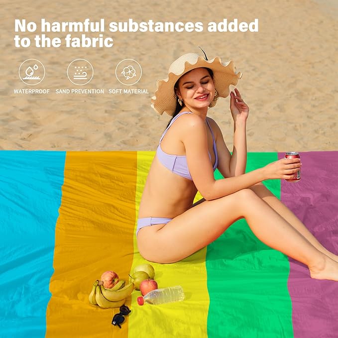 - Beach Blanket Waterproof Sandproof:Dry-Quick,Can also be used as a rain shed,sunshade,tent,toddler crawl,Emergency mat,Feel comfortable lying down.