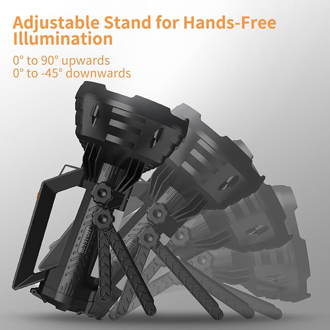 - Super-Bright:1000,000-Lumen Led(60000-hour lifespan).A Powerful Durable spotlight to illuminate any dark spot,space,or place(Distance Up to 600 Yards). Features Super Bright/Bright/SOS modes. SIde light offers soft flood light.With red lens,it’s a perfect Hunting light.