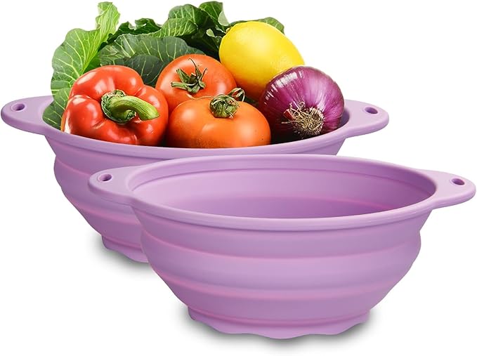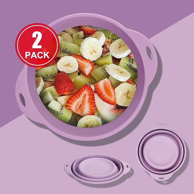 2 PACK Collapsible Bowls 88oz Large Collapsible Bowl for Camping Mixing Bowl Collapsible Salad Bowl for Outdoor Hiking Travel Storage and Mixing (Light Purple)