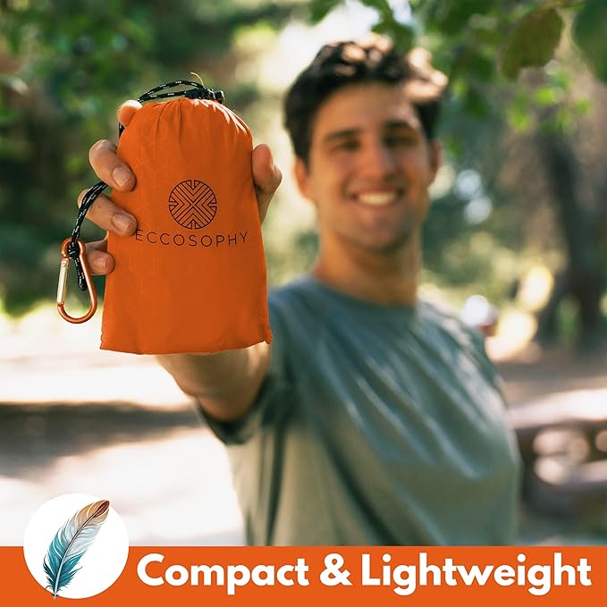 ECCOSOPHY Sand Proof & Waterproof Picnic Blanket - 60x55 Outdoor Compact Pocket Blanket, Lightweight Ground Cover for Hiking, Camping, Festivals, Sports, Travel with Bag & Stakes (Terracotta)