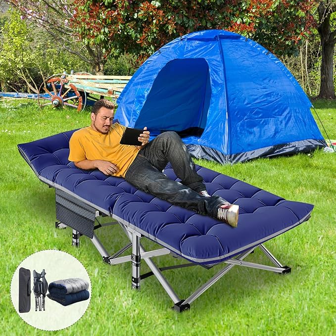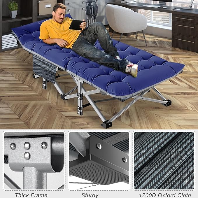 ABORON Oversized Folding Camping Cot for Adults, Double Layer 1200D, 500lb Capacity, Heavy Duty Guest Cot with Mat & Carrying Bag for Indoor & Outdoor Use