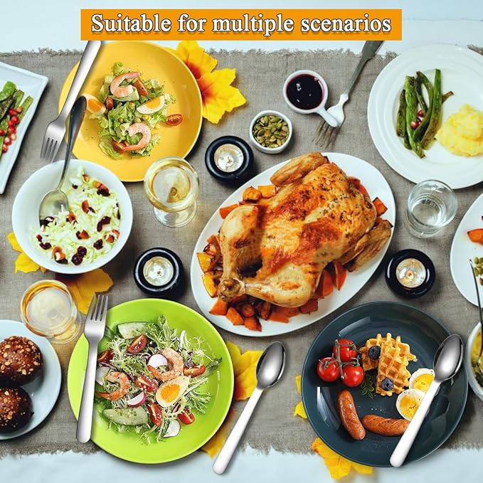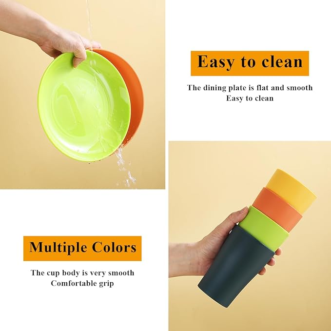 - GREAT VALUE SET: You will get a nice set of cutlery, the set includes 4 large plates, 4 large capacity cups and set of stainless steel cutlery, the cutlery includes knife, fork and spoon.