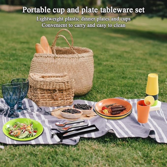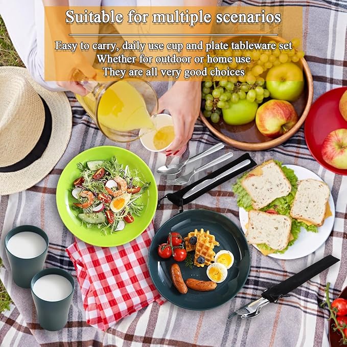 - HIGH QUALITY: The plates and cups of this camping set are made of pp material, BPA free, non-toxic and odourless. They are lightweight, unbreakable and sturdy, the stainless steel cutlery is made of high quality stainless steel, sturdy and durable.