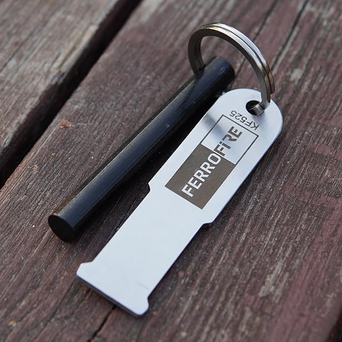 KF525 Stay Safe Keychain Fire Starter with 2.5 Inch Long Ferro Rod and Striker for Camping Emergency (Pack of 2)