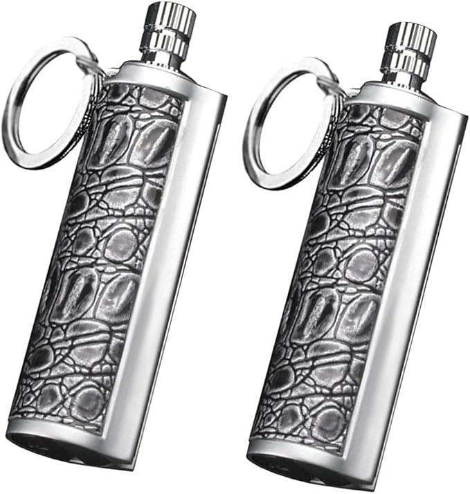 Fire Starter Lighter Waterproof Flint Match Outdoor Camping Permanent Metal Matchstick with Keychain(Sold Without Fluid) (Silver+Silver)