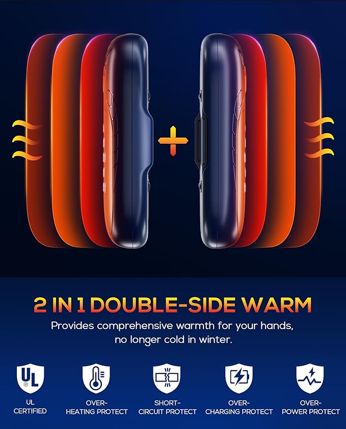 - 【High-Performance&Safety Certified】This hand warmer is made of advanced lithium batteries, aluminum, and ABS which are certificated with UL, CE, and FCC. The built-in intelligent protection system can provide protection against common problems such as power fluctuations, short circuits and overloads. It is flame-proof, explosion-proof and has no radiation, giving you peace of mind.