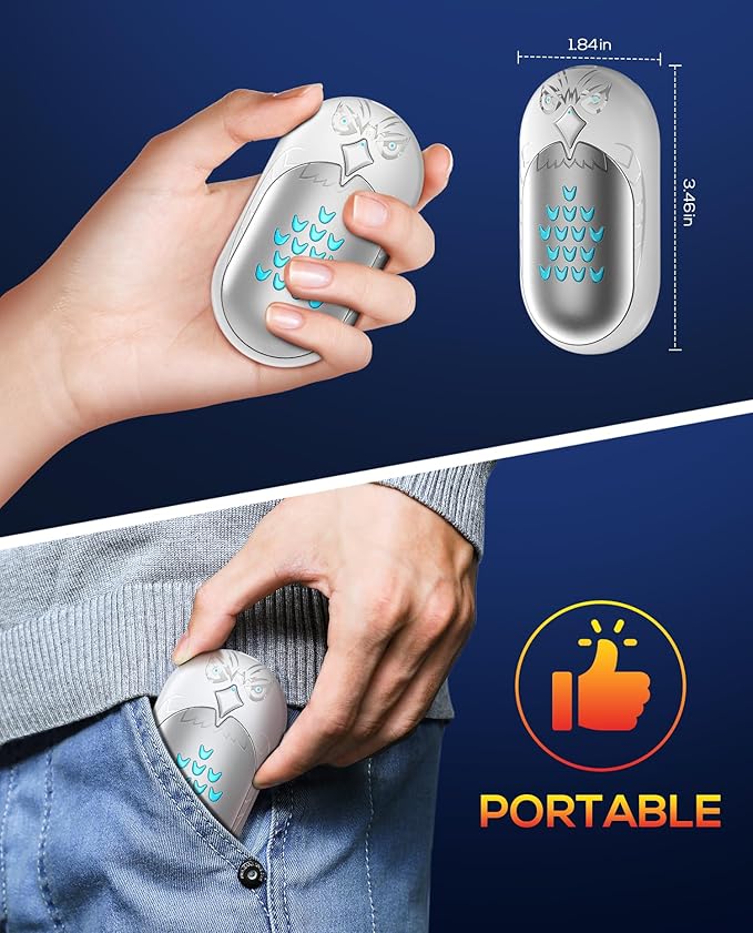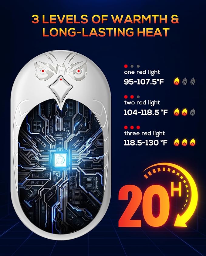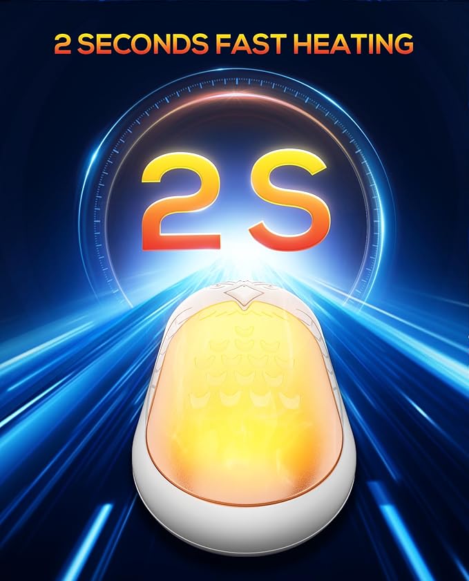 - 【2s Instant Heat & 3 Heat Levels】Say goodbye to cold fingers and long wait times. Featuring a premium chip control system, these electric hot pockets hand warmers deliver heat up to 130°F in just 2 seconds. With 3 temperature levels for stable, adjustable, and precise comfort heating. Give you quick relief from the cold and experience the healing power of heat therapy.