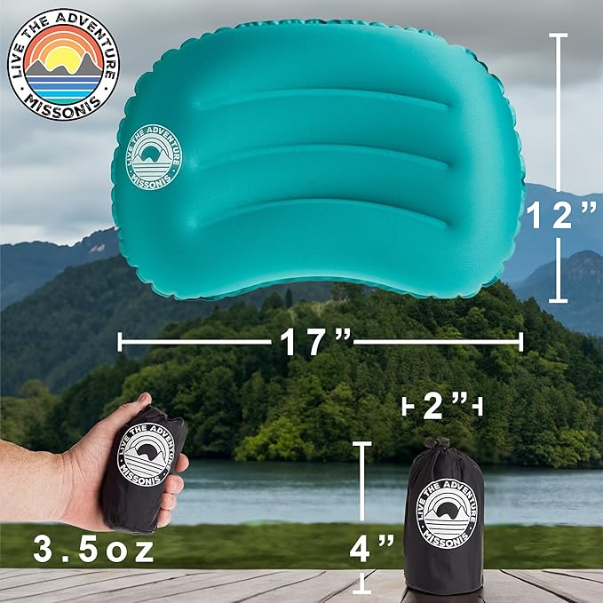 - ULTIMATE FULL SIZE CAMPING PILLOW: This blow up travel pillow is perfect for travelers, campers, backpackers, and beachgoers. Its compact size and lightweight design make it ultraportable and backpacking essential, while its inflatable construction offers superior comfort and support for a restful nights' sleep. Whether you're on a long-haul flight, camping under the stars, or relaxing on the beach, this versatile inflatable pillow for camping is your ideal companion.