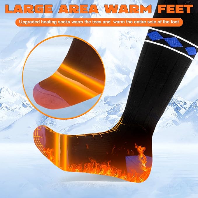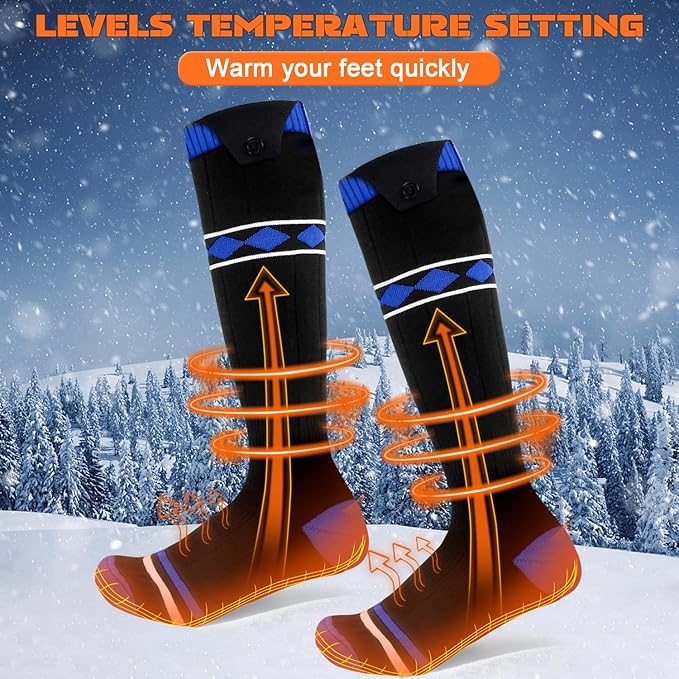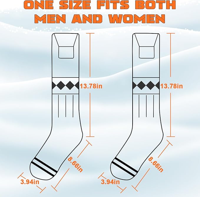 - 🔥〖PERFECT FOR WINTER SPORTS〗Heated electric socks are the best choice for both men and women in cold winters. These heated socks for those who enjoy the winter outdoors such as skiing, hiking, ice fishing, jogging, hunting, cycling, motorcycling, running, snow shoveling and de-icing. Surprise gifts for your parents, lovers, and friends!