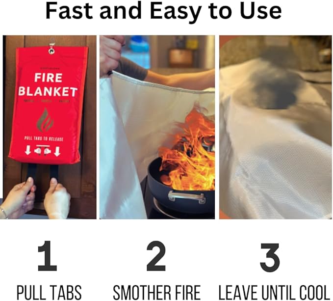 - ✅ FIRE BLANKET: Elevate home safety that comes with clear and concise instructions, ensuring a quick and effective response. With its high-temperature resistance and the easy to pull tabs, this emergency blanket is a must-have survival tool for homes, kitchens, and more.