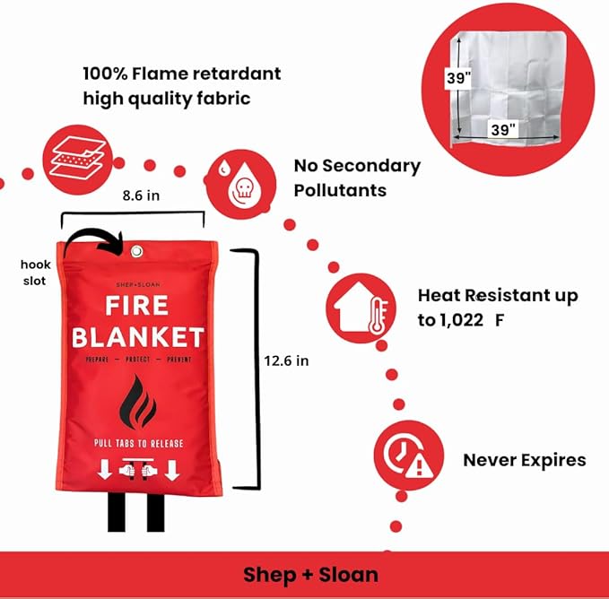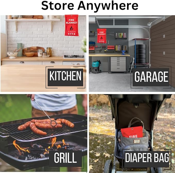 - ✅ COMPACT AND VERSATILE: Our fire blankets are compact enough for your diaper bag, car, or backpack for a camping trip. These emergency fire blankets for home are a reliable companion wherever you go. With no expiration date, they are always ready for action! Fire blanket made in usa