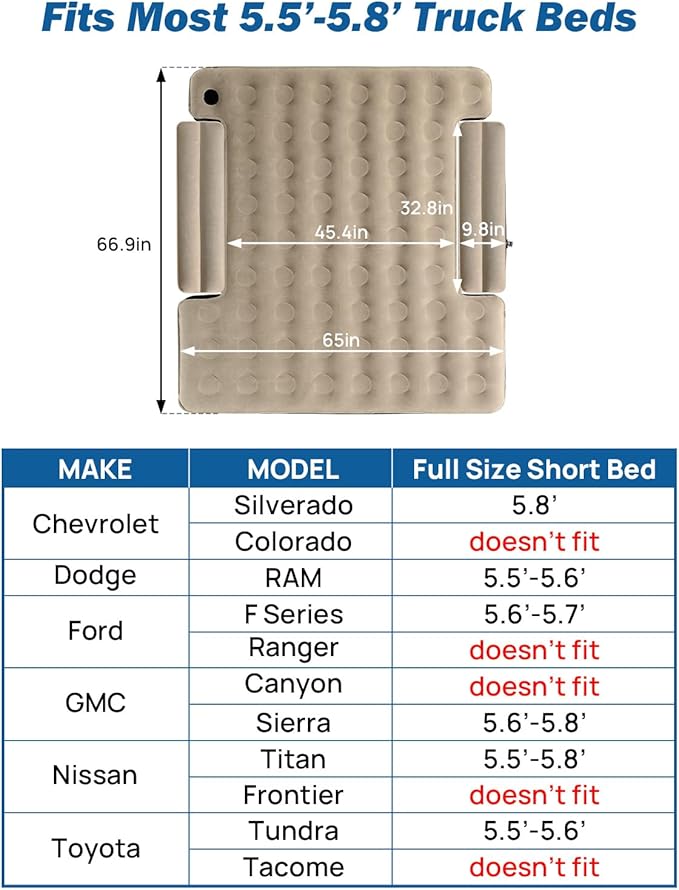 JOYTUTUS Truck Bed Mattress for 5.5-5.8Ft, Full Size Inflatable Mattress Pickup Short Beds for Outdoor Camping, with Carry Bag & Cup Holder & Cavity Design, Camel&Black