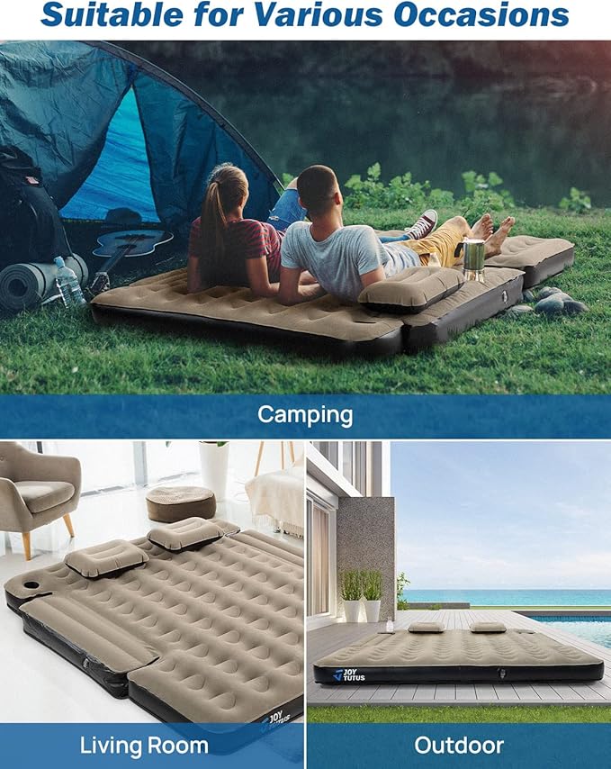 - 【Versatile Usage】: Ideal for various settings, this air mattress fits perfectly in tents, living rooms, courtyards, and truck beds. It's perfect for drive-in movie nights, overnight fishing trips, family road trips, movie marathons, self-driving adventures, and camping excursions.