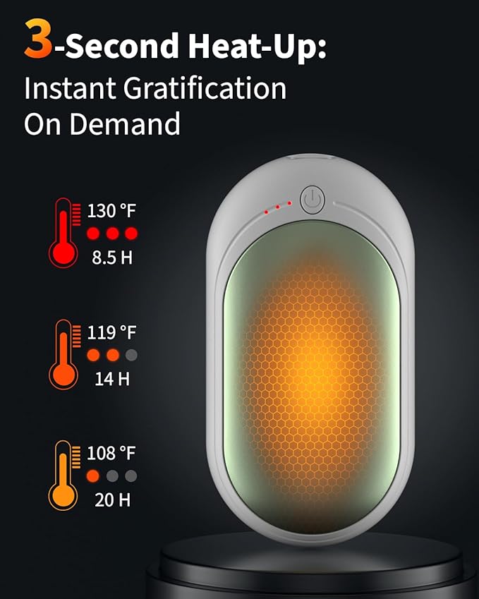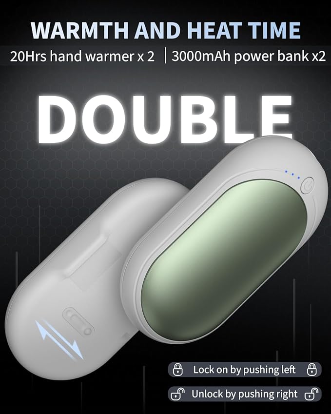 - Efficient Hand Warmer: Two-in-one design, you can share warmth with your loved ones. The 2023 upgraded portable handwarmers employ cutting-edge heating technology to generate consistent and soothing warmth in seconds. With 3 heat settings,