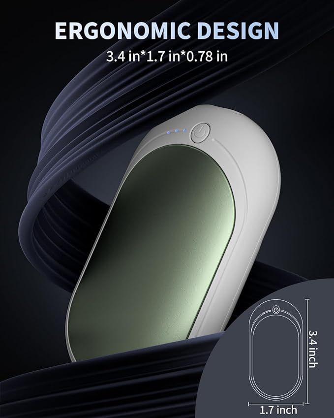 - Compact Design: Our Electric Hand Warmers are designed with portability in mind. Its slim and ergonomic design. The smooth, contoured edges ensure a comfortable grip, making it easy to hold and use for extended periods. Navigating the hand warmer's features is a breeze thanks to its intuitive and user-friendly controls.
