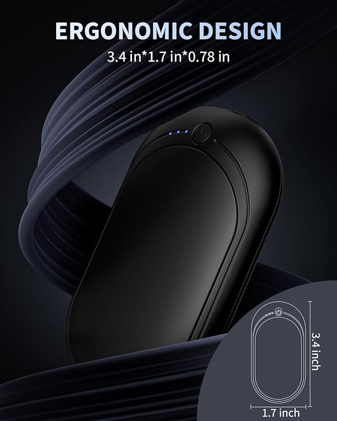 - Compact Design: Our Electric Hand Warmers are designed with portability in mind. Its slim and ergonomic design. The smooth, contoured edges ensure a comfortable grip, making it easy to hold and use for extended periods. Navigating the hand warmer's features is a breeze thanks to its intuitive and user-friendly controls.