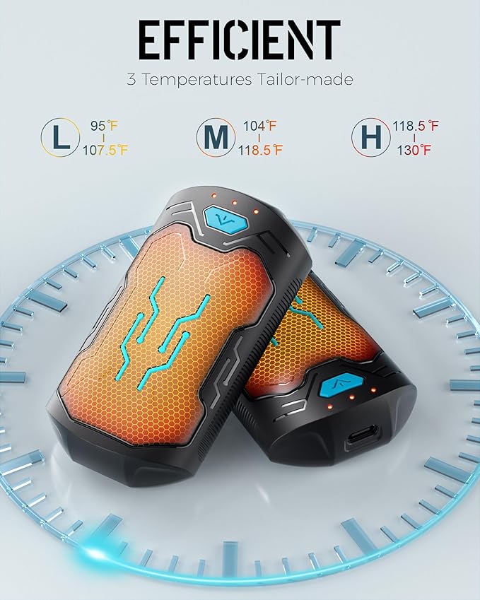 - 𝐈𝐍𝐒𝐓𝐀𝐍𝐓 𝐇𝐄𝐀𝐓, 𝟑 𝐓𝐄𝐌𝐏𝐄𝐑𝐀𝐓𝐔𝐑𝐄 𝐋𝐄𝐕𝐄𝐋𝐒: Say farewell to cold fingers and lengthy waiting. Featuring a premium chip control system, these electric hand warmers provide rapid heat up to 130°F in just 3 seconds. With 3 adjustable temperature levels, you can experience stable comfort heating and quick relief from the cold.
