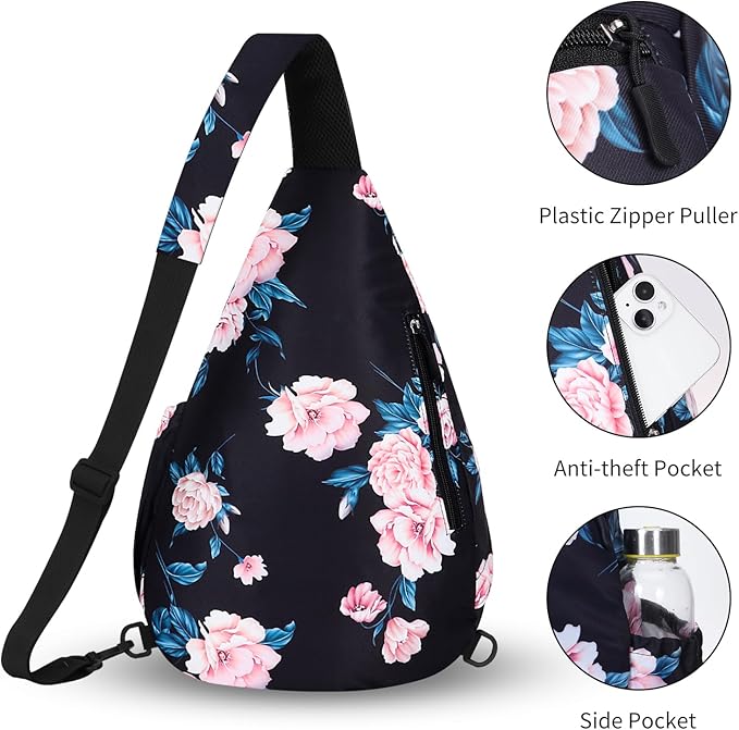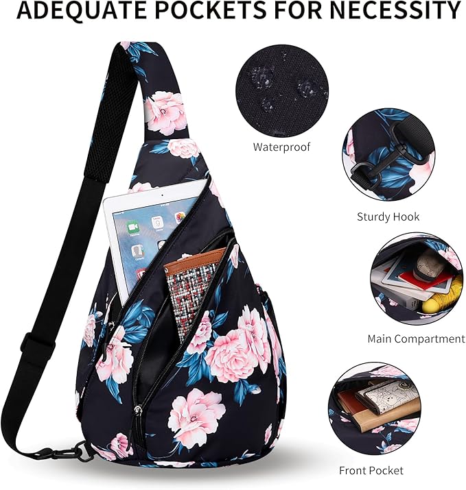 - LARGE CAPACITY & MULTI-COMPARTMENT DESIGN--Featuring 4 spacious pockets, this sling bag can hold all your essentials: 1*Main pocket, 1*Front pocket, 1*Back pocket, 1*Side pocket. Perfect as a travel sling bag or everyday sling bag for city commutes.