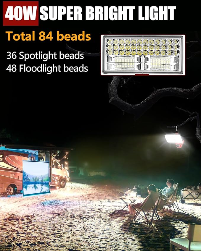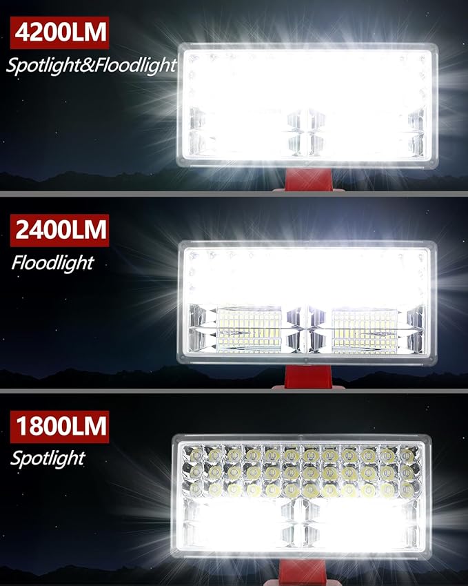 - 【4200LM Super Bright Wide Beam Floodlight & Spotlight 】—— Philophca for Craftsman light Equipped with 84 high-quality LED wicks including 48 Floodlight wicks and 36 Spotlight wicks. 3 brightness modes: 1800LM/2400LM/4200LM. 6500K daylight providing the first-class indoor/outdoor lighting experience. High-efficient LED lights with wide-angle illumination can improve the lighting utilization. There are spotlight and floodlight at the same time, the local illumination brightness is very good.