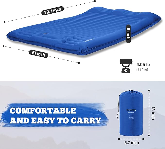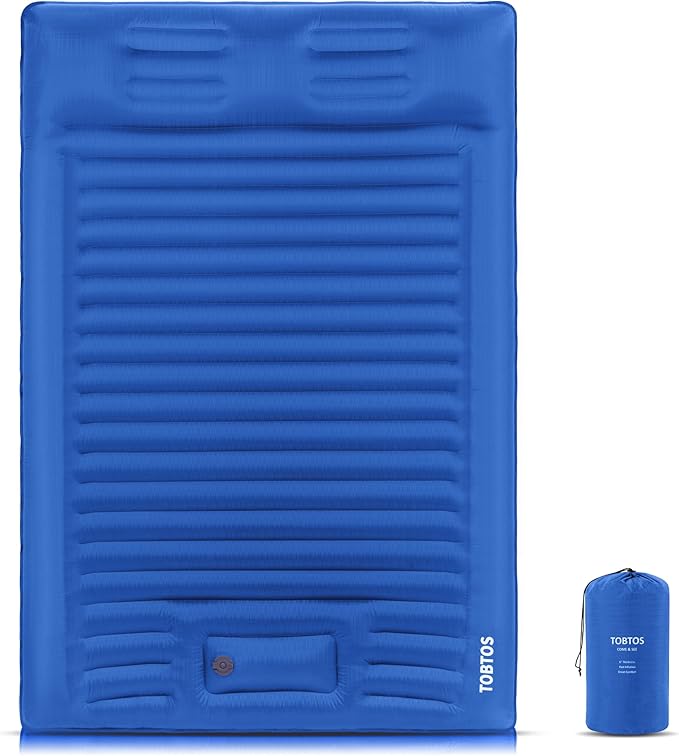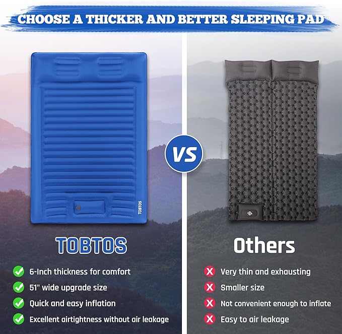 TOBTOS Double Sleeping Pad for Camping, Extra Thick 6" Camping Mattress 2 Person with Pillow Built-in Foot Pump, Inflatable Sleeping Mat for Camping, Backpacking, Hiking, Traveling(Blue)
