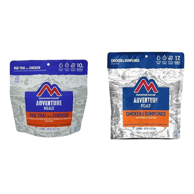 Mountain House Pad Thai with Chicken | Freeze Dried Backpacking & Camping Food |2 Servings | Gluten-Free and Mountain House Chicken & Dumplings | Freeze Dried Backpacking & Camping Food |2 Servings