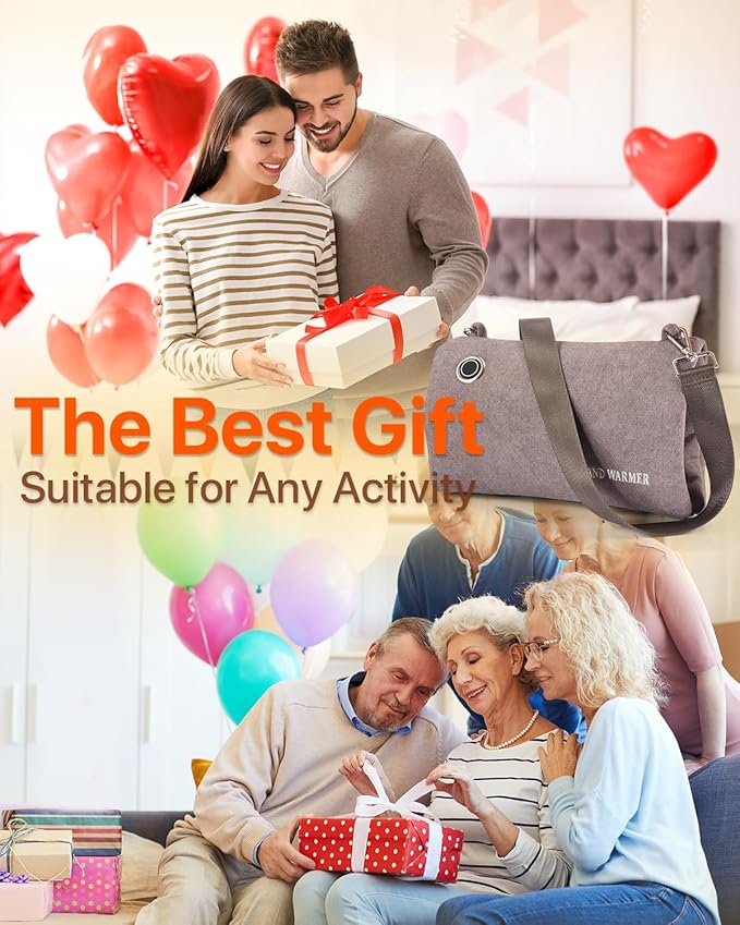 Hand Warmers Pouch Rechargeable for Hot Hands Body Warmers Pain Relief, 12000mAh Graphene Heated Gloves Battery Operated Heater with 3 Levels & Double-Sided Heating Gifts Christmas for Women Mom Dad