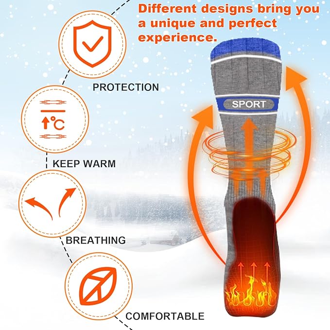 - Color : Grey+Blue+White Electric Heated Socks for Men Women