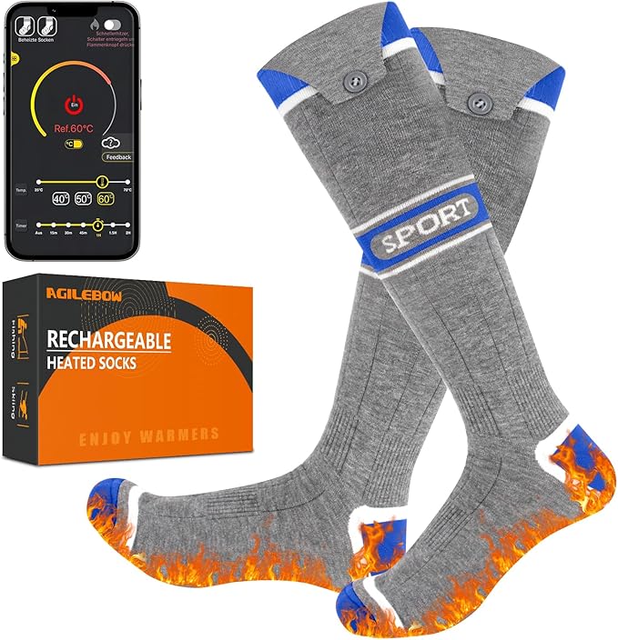 - ❄【Adcanced Heating Technology Heated Hocks】:Stay warm and comfortable during your favorite outdoor activities with AGILEBOW Heated Socks. These electric socks are designed to provide exceptional warmth to your feet, even in the harshest winter conditions. Our electric socks feature innovative heating elements that provide reliable warmth and lasting comfort, Say goodbye to cold spots and experience ultimate comfort throughout your entire foot.