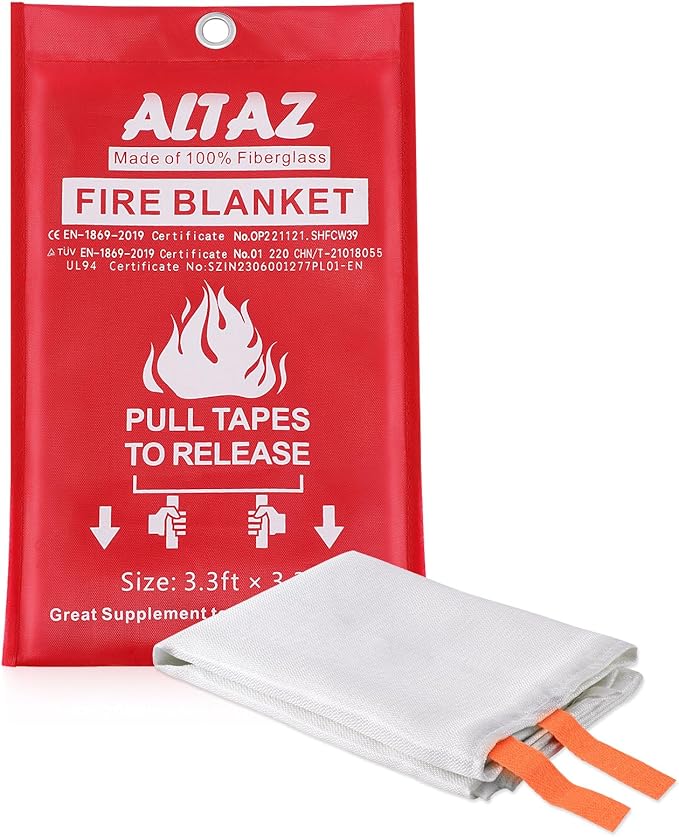 - 🔥【KEEP YOUR FAMILY SAFE】Safeguard your home and kitchen with ALTAZ upgraded emergency fire blankets. Designed as an emergency-prepared home safety device for peace of mind. You can put it on your body to escape from the fire scene. Gift Package: 1 Pack, blanket size is 39.4×39.4 Inches. Perfect as a great gift to your friends and family.