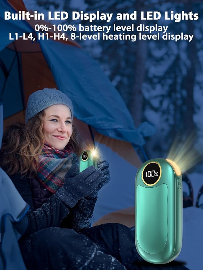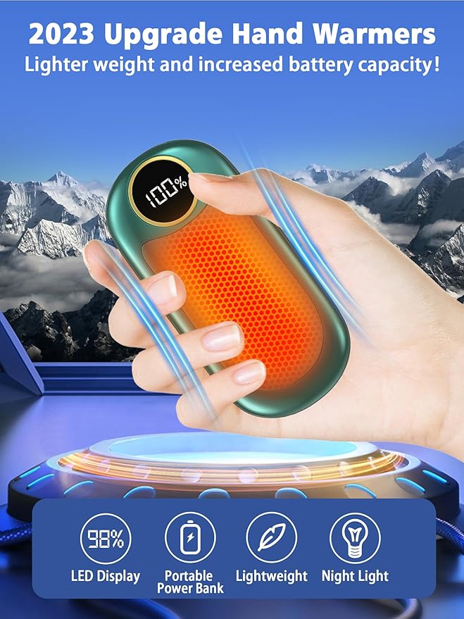 - Multifunctional Hand Warmers Rechargeable 1 Pack: Using advanced temperature control chips to accurately control the temperature, whether you are outdoors or indoors, it can warm your hands and keep the cold away. It can be used as an emergency power bank when you are out, charging your mobile phone or other devices at any time. Our electric hand warmers built-in LED light which can provides lighting in the dark