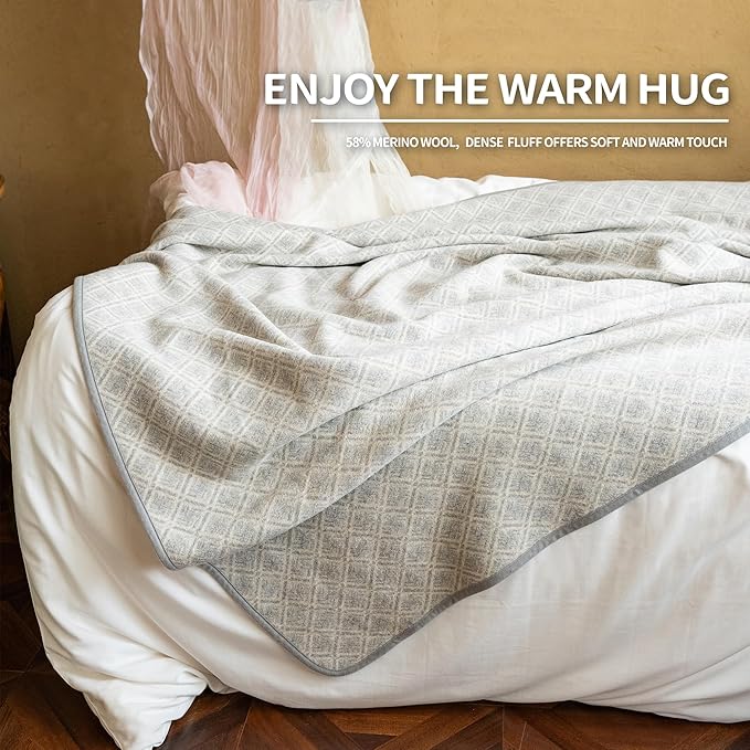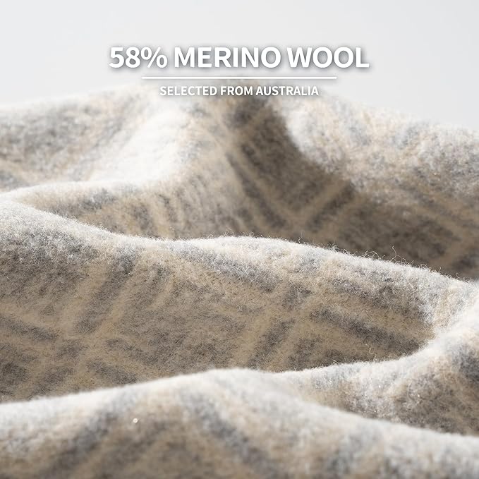 - NEW UPGRADE - ACUSHLA new series of merino wool blankets upgrade the wool content to 58% for better thermal insulation and breathability, preserving original pattern design and the dense fluff with a soft and skin-friendly touch