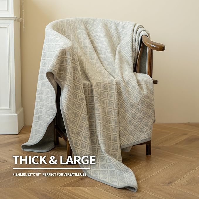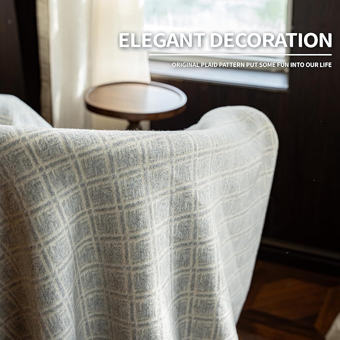 ACUSHLA Merino Wool Blanket - Soft Warm Thick Washable Large Bed Couch Camping Outdoor Travel Throw Blanket All Weather, Plaid Grey 79X63
