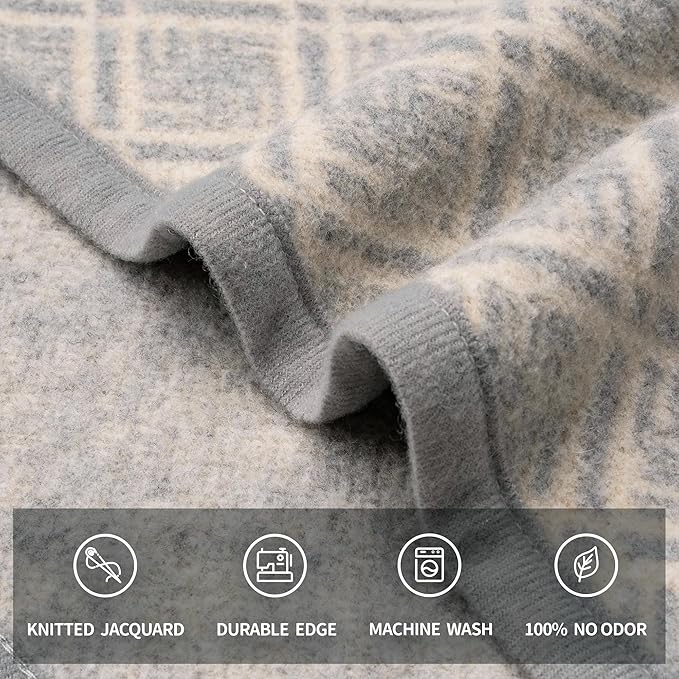 - STYLISH DECO - Elegant knitted jacquard pattern is good expression of your taste and personality. Our vibrant, snug and warm blanket would nicely add unique vibe in bedroom, living room, patio furniture, porch, cabin, party or concert