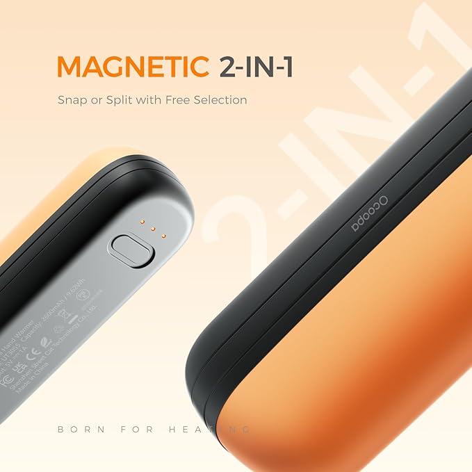 OCOOPA 2 in 1 Magnetic Rechargeable Hand Warmers, UT2s Mini Electric Handwarmers 2 Pack, Split USB-C, Reusable Portable Pocket Heater, Raynauds, Golf, Tech Gifts for Women Men