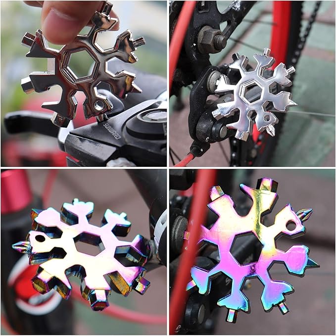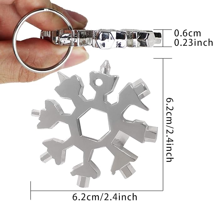 - 18-in-1 Snowflake Multi-tool:Slotted Screwdriver , Bottle Opener,Key Hole,Phillips Screwdriver: Metric (millimeter) - 3;Allen Wrench: Metric (millimeter) - 3-4-5-6-7-8-16;Outer Hex Wrench:Metric (millimeter) -8-9-10-11-12-13-14.