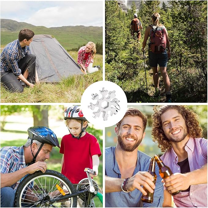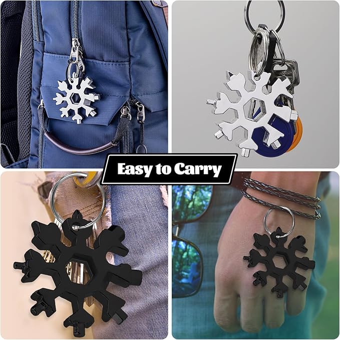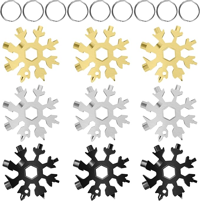 18-in-1 Snowflake Multi Tool, 9 Pack Stainless Steel Snowflake Bottle Opener/Flat Phillips Screwdriver Kit/Wrench, Durable and Portable to Take