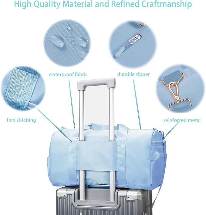 Women Gym Bag with Separation for Wet and Dry, Shoe Storage, Waterproof Travel Duffle Bag for Gym, Swimming, Yoga, Sports (Blue)