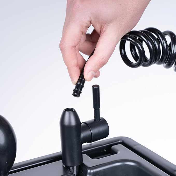 - BOXIO WASH's camping essentials kit offers a 100cm long hose for extended reach, a handy On/Off switch on the shower head, and a hassle-free Plug-and-Play attachment to connect effortlessly to your setup.